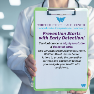 Addressing these disparities requires intentional, community-based approaches that remove barriers to care and prioritize prevention for those most at risk. At Whittier Street Health Center, we are committed to advancing women’s health equity by offering on-site cervical cancer screening, HPV vaccination, and educational outreach. Our care teams, together with our partners from the Dana-Farber Community Cancer Institute, work diligently to ensure that our patients receive their recommended cancer screenings on time and offer navigation support services to any woman with an abnormal test result, ensuring guidance at every step of the way.
